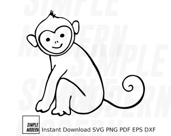 Cute Baby Monkey Svg File Jungle Animal Vector Outline Etsy
